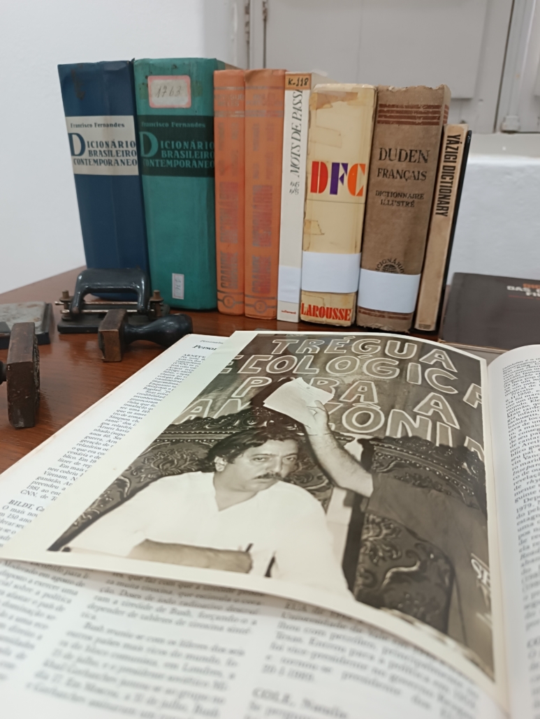 Abrir um dicionário é parte de uma busca que possui por objetivo ampliar o conhecimento, seja qual for o interesse da pesquisa, a finalidade é sempre uma: aprender. A exposição de dicionários “De 1875 aos nossos dias: uma coleção singular” é resultado de um trabalho de leitura e análise do acervo pessoal da Profª Verli Petri, do acervo do Laboratório Corpus e do acervo do Centro de Documentação e Memória da UFSM.