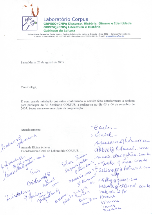 Sala 2323, PPGL, Centro de Educação, UFSM, Santa Maria - RS