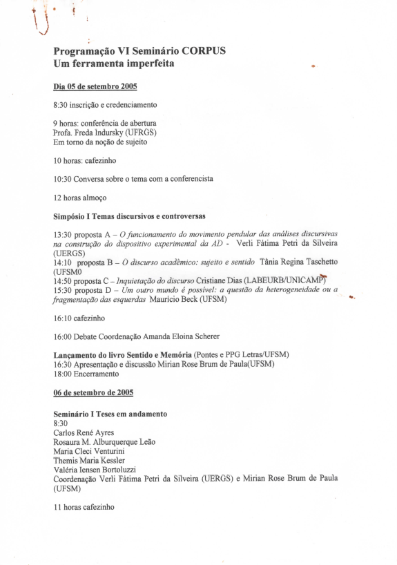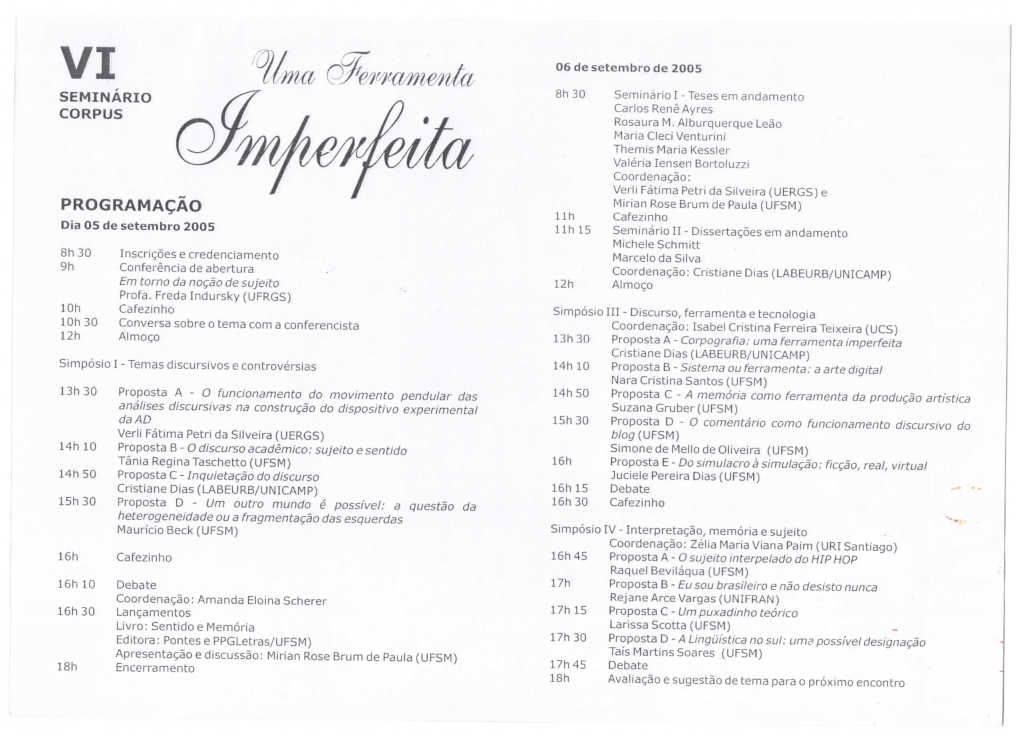VI Seminário Corpus – “Uma Ferramenta Imperfeita”