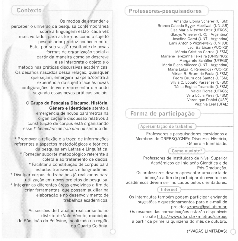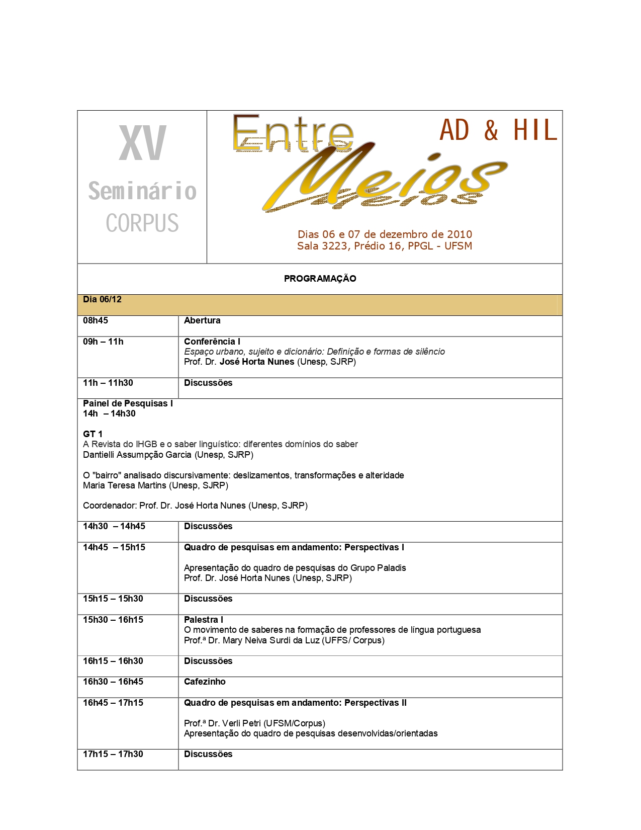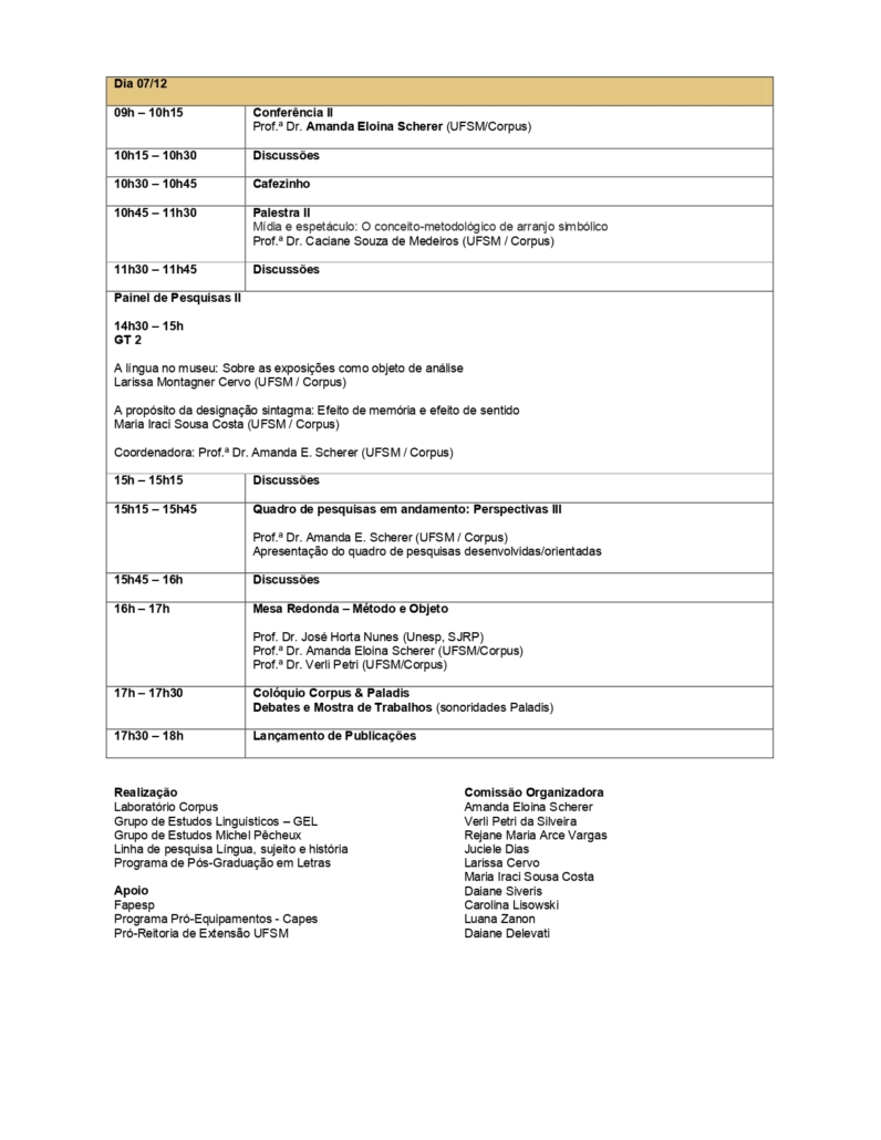 XIX Seminário Corpus – “Língua e Ideologia” e “Dez jornadas de trabalho ao longo do 2° semestre de 2012”
