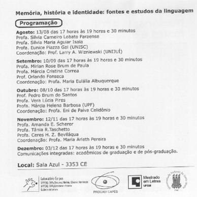 II Seminário Corpus – “Memória, história e identidade: fontes e estudos da linguagem”