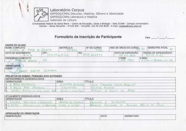 Sala 2323, PPGL, Centro de Educação, UFSM, Santa Maria - RS